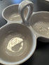 Brukan keramiikkaa hauskasti kolmeosaisessa tarjoilukulhossa. Yhden kulhon halkaisija 11,5 cm ja korkeus 6 cm.